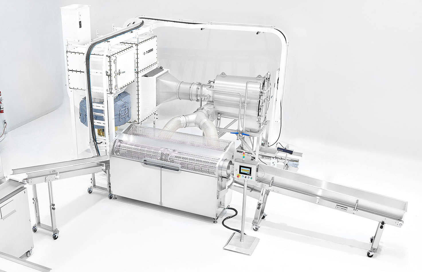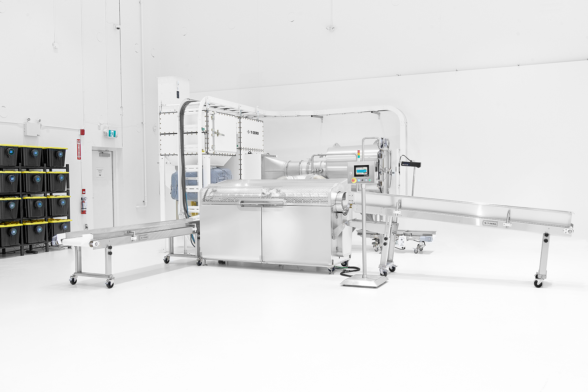 The T-ZERO PRO is SIL 3 rated and stacked with multiple health and safety features, including stainless steel food-safe materials, safety sensors, dual monitoring, emergency stops, access restrictions, and LED illumination for improved visibility. Unlike comparable trimming systems, the T-ZERO PRO has the harvest crew health, safety, and comfort top of mind, with a hospital-grade HEPA air filtration system and dual silencers to decrease noise to 70 decibels.